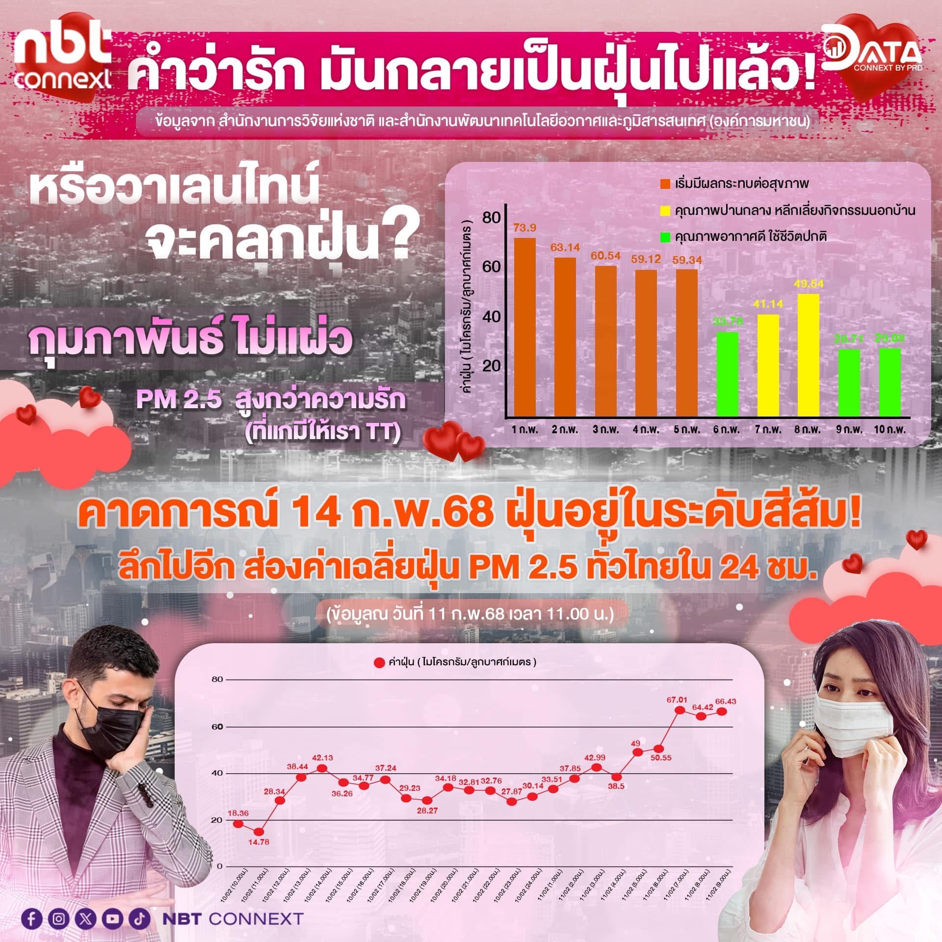 📊 ฝุ่นวาเลนไทน์อยู่ในระดับ สีชมพู เอ้ย! สีส้ม รัฐเดินหน้าตั้งศูนย์ปฏิบัติการฉุกเฉินด้านฝุ่น จัดการรายวันพร้อมหารือปรับกฎหมายสู่การต้านฝุ่นอย่างยั่งยืน